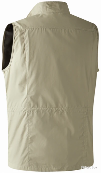 Le gilet Lofoten de la marque Deerhunter de couleur beige se prĂŞte Ă un grand nombre d’activitĂ©s de plein air comme la chasse, la pĂŞche, les sorties familiales, …