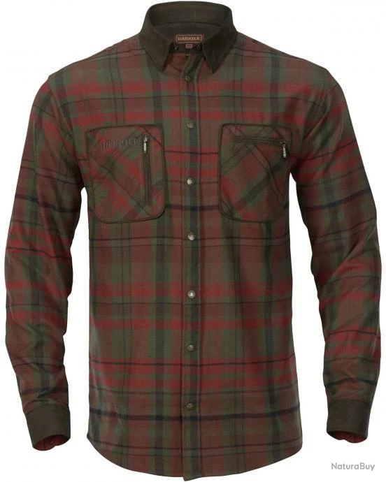 La chemise chaude Härkila Pajala est fabriquée en flanelle douce et présente des détails en suédine de haute qualité sur le col, les coudes et les poignets. Grâce à la fermeture pratique à boutons-pression, la chemise à carreaux de bûcheron peut également être portée comme une veste légère. Avec 2 poches poitrine, gauche avec zip horizontal, droite avec zip vertical. Coupe classique avec col boutonné.